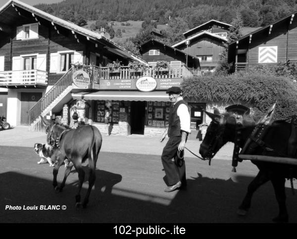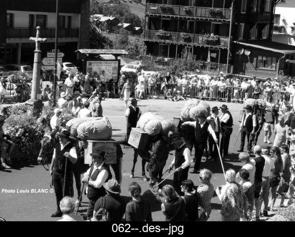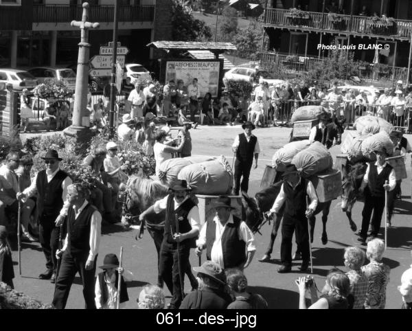 Précédé par les chars retraçant les métiers anciens de la montagne du Beaufortain, groupes folkloriques, ânes, mulets, chevaux ou caprins envahirent les rues jusqu'à la place du village menés par une noria de paysans parés à l'ancienne.