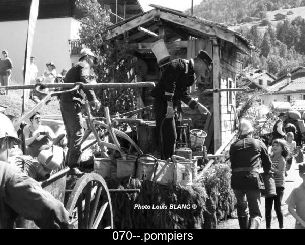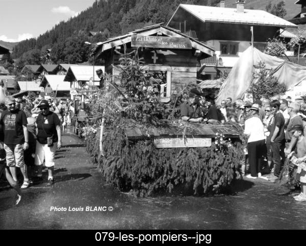 La clique départementale des sapeurs pompiers menait le défilé, et les pompiers locaux s'en donnèrent à coeur joie pour arroser le public en cette journée très chaude.